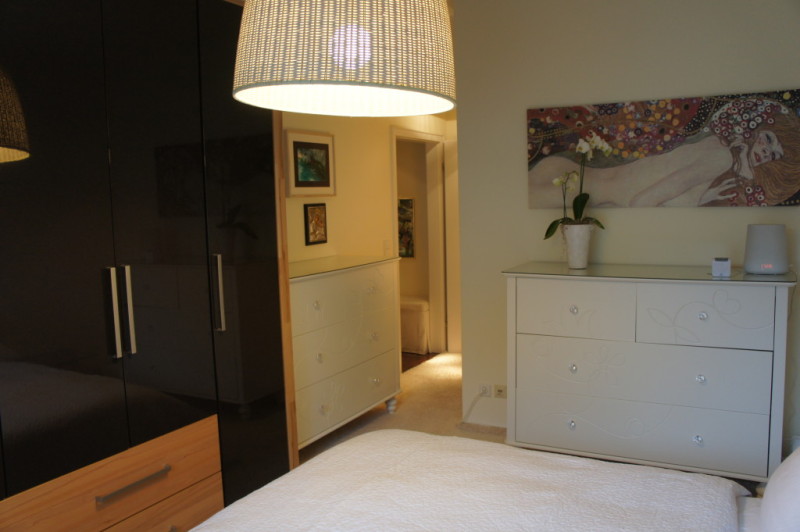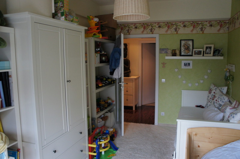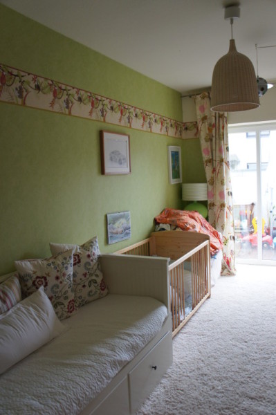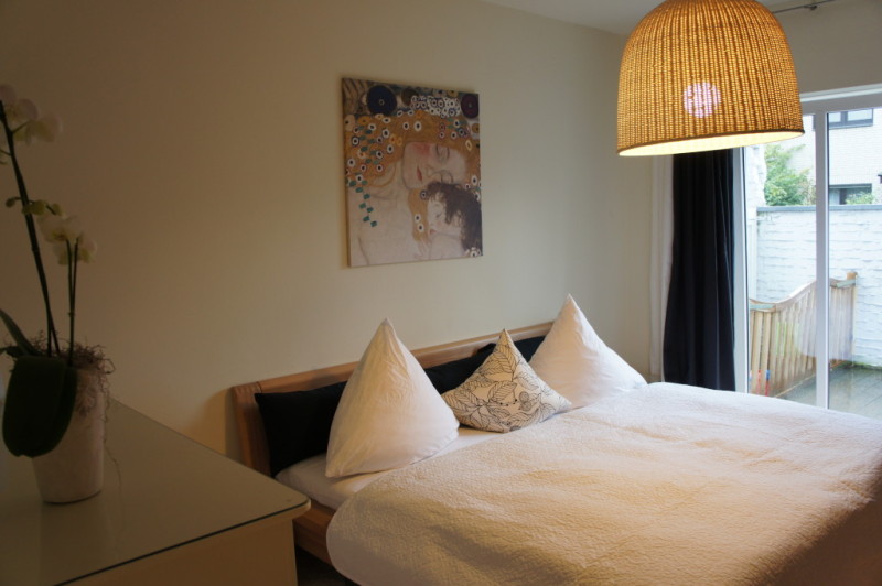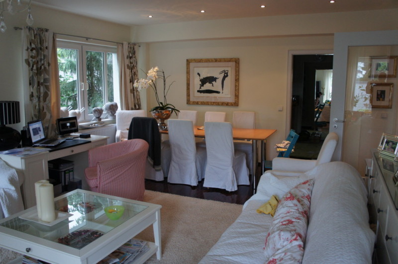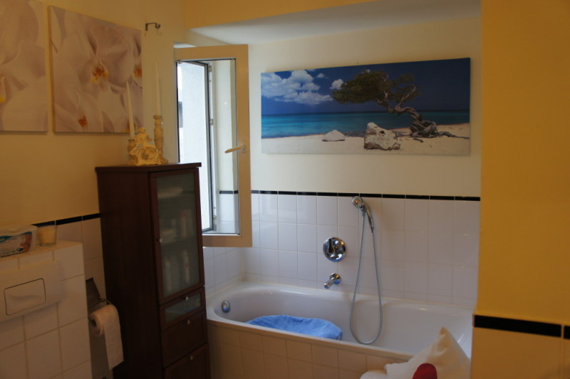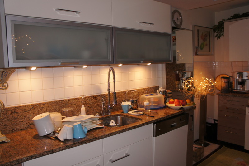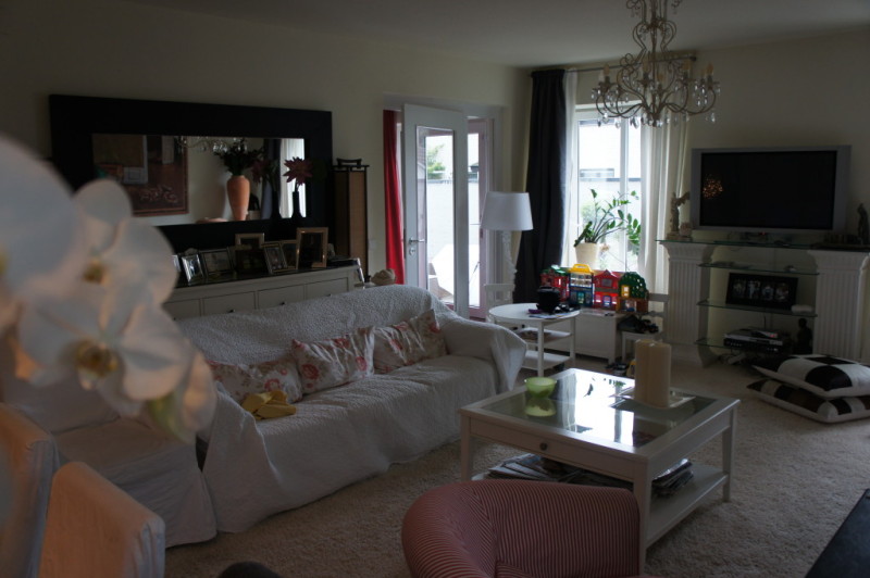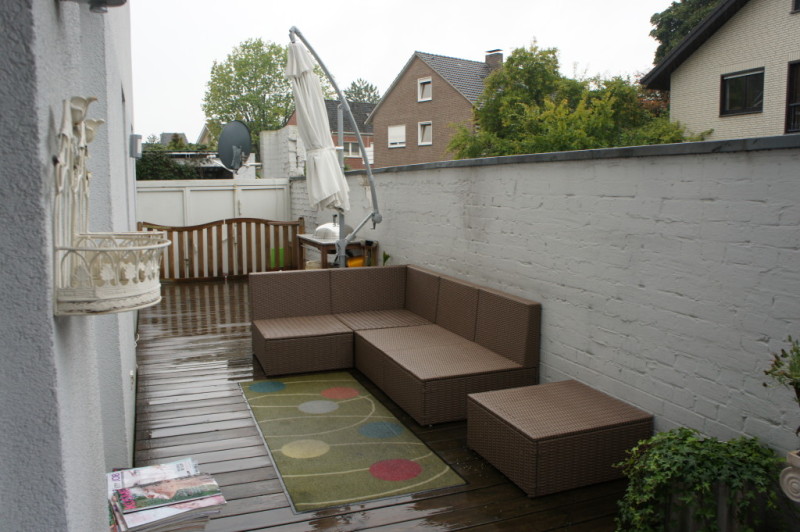Zur Wohnung gehört ein grosses Wohn- Esszimmer mit angrenzender Küche, in der genug Platz für einen zusätzlichen Essplatz vorhanden ist. Gegenüber der beiden Kinderzimmer befindet sich das Gäste - WC mit einer zusätzlichen Dusche. Vom Elternschlafzimmer aus gelangt man in das grosse Badezimmer mit Doppelwaschbecken, WC, Dusche und Badewanne. Direkt neben dem Gäste - WC befindet sich ein Hauswirtschaftsraum, in dem die Waschmaschine, der Trockner und sonstige Haushaltsgeräte untergebracht werden können. In einem kleinen Abstellraum ist die 2009 neu installierte Brennwert - Heizungsanlage untergebracht. Die Terrasse aus Holzdielen erstreckt sich über die gesamte Länge der Wohnung und ist zum Sternenweg durch eine Mauer getrennt, sodass die Privatsshäre gewahrt ist. Zur Wohnung gehört ein Stellplatz auf dem Hof und ist direkt von der Terrasse aus zu erreichen. Zusätzlich kann noch ein Abstellraum auf dem Hof erworben werden.